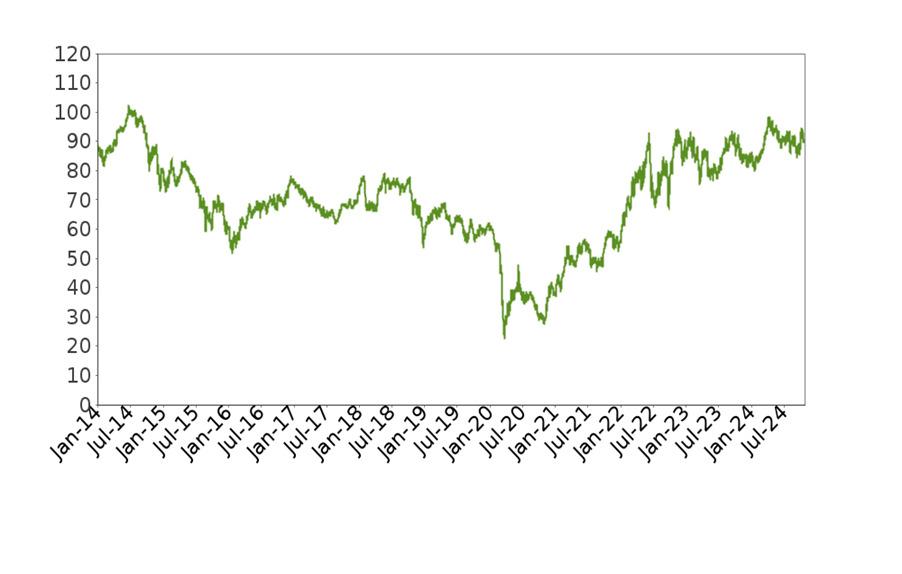 Index share amounts are assigned to each component stock to arrive at the weights calculated above. Since index shares are assigned based on prices one business day prior to rebalancing, the actual weight of each component stock at the rebalancing differs somewhat from these weights due to market movements.