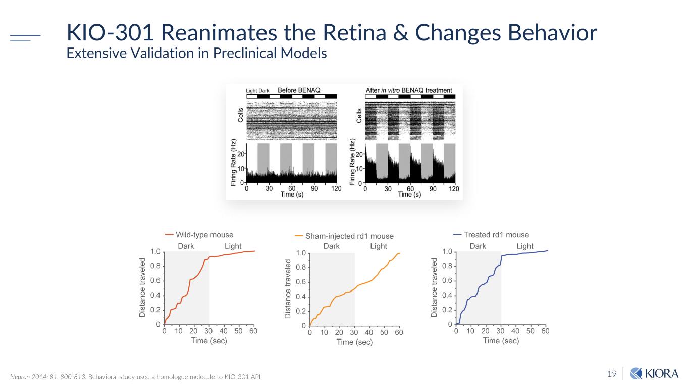 19 KIO-301 Reanimates the Retina & Changes Behavior Extensive Validation in Preclinical Models Neuron 2014: 81, 800-813. Behavioral study used a homologue molecule to KIO-301 API