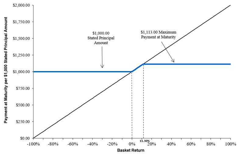 The diagram below illustrates your payment at maturity for a range of hypothetical basket returns. The diagram assumes that the maximum return at maturity will be set at the lowest value indicated on the cover page of this pricing supplement. The actual maximum return at maturity will be determined on the pricing date.