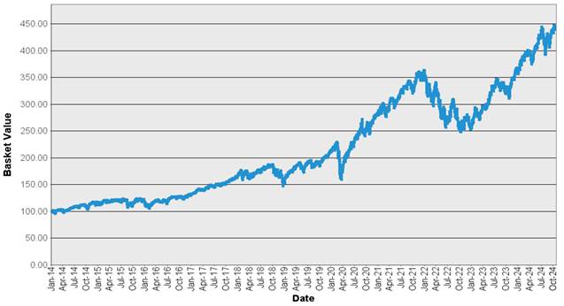 | Hypothetical Historical Basket Performance January 2, 2014 to October 28, 2024 |