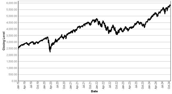 The graph below shows the closing level of the underlier for each day such level was available from January 2, 2019 to October 25, 2024. We obtained the closing levels from Bloomberg L.P., without independent verification.