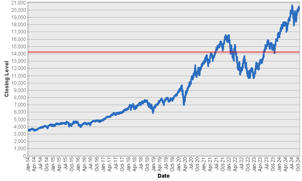 The closing level of the Nasdaq-100 Index® on October 25, 2024 was 20,352.02.