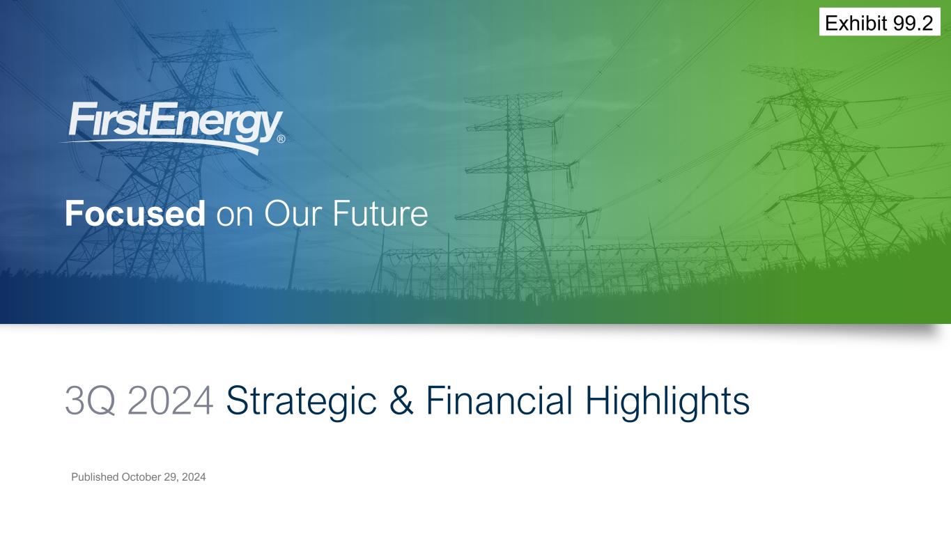 FirstEnergy’s Strategic and Financial Highlights presentation is posted on the company’s Investor Information website – www.firstenergycorp.com/ir. It can be accessed through the Third Quarter 2024 Financial Results link. Important information may be disseminated initially or exclusively via the company’s Investor Information website; investors should consult the site to access this information.