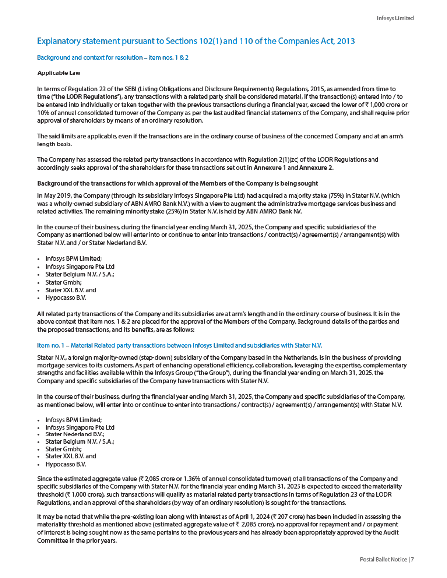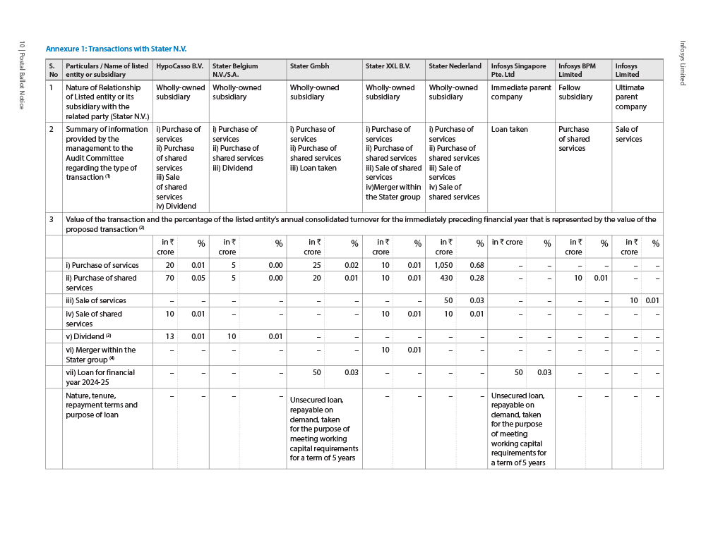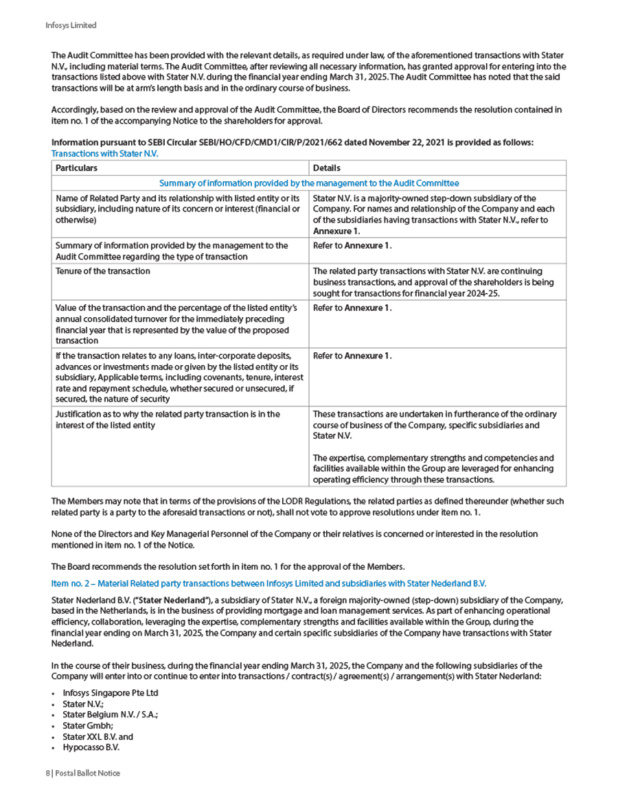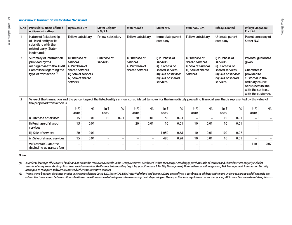| 2. | Material Related Party Transactions between Infosys Limited and subsidiaries with Stater Nederland B.V. |