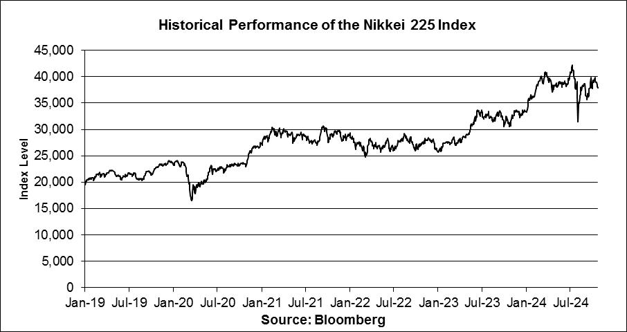 The following graph sets forth the historical performance of the Nikkei 225 Index based on the daily historical closing levels of the Nikkei 225 Index from January 4, 2019 through October 25, 2024. The closing level of the Nikkei 225 Index on October 25, 2024 was 37,913.92. We obtained the closing levels above and below from Bloomberg, without independent verification.