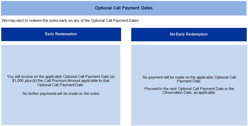 | · | The notes are designed for investors who seek early exit prior to maturity at a premium if we elect to redeem the notes early, in whole but not in part, at our option on any of the Optional Call Payment Dates. |