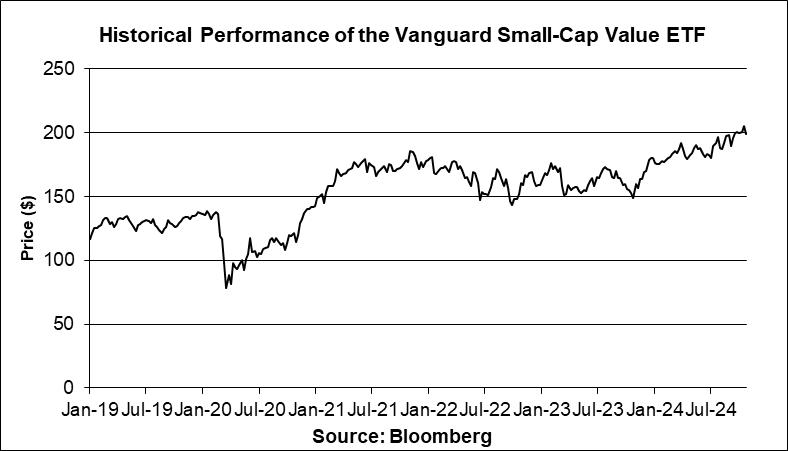 The following graphs set forth the historical performance of each Fund based on the weekly historical closing prices of one share of each Fund from January 4, 2019 through October 25, 2024. The closing price of one share of the Vanguard Small-Cap Value ETF on October 25, 2024 was $198.82. The closing price of one share of the Consumer Staples Select Sector SPDR® Fund on October 25, 2024 was $81.06. We obtained the closing prices above and below from the Bloomberg Professional® service (“Bloomberg”), without independent verification. The closing prices above and below may have been adjusted by Bloomberg for actions taken by the Funds, such as stock splits.