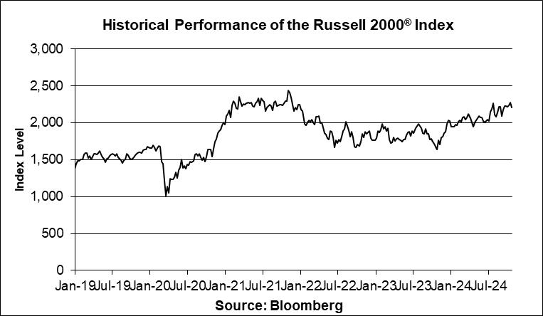 The Russell 2000® Index consists of the middle 2,000 companies included in the Russell 3000E™ Index and, as a result of the index calculation methodology, consists of the smallest 2,000 companies included in the Russell 3000® Index. The Russell 2000® Index is designed to track the performance of the small capitalization segment of the U.S. equity market. For additional information about the Russell 2000® Index, see “Equity Index Descriptions — The Russell Indices” in the accompanying underlying supplement.