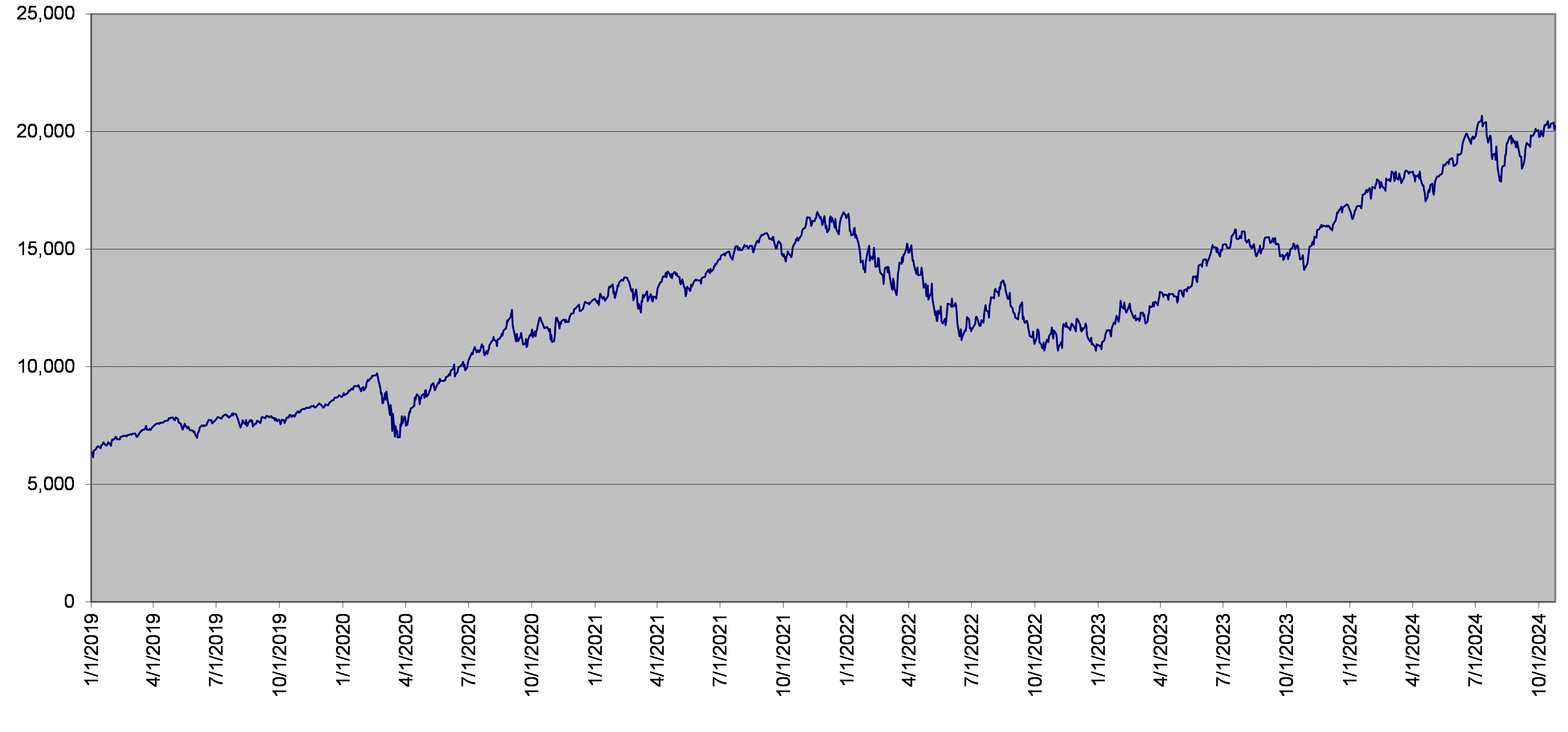 The following graph sets forth the daily closing values of the INDU Index for the period from January 1, 2019 through October 24, 2024. The related table sets forth the published high and low closing values, as well as end-of-quarter closing values, of the INDU Index for each quarter in the same period. The closing value of the INDU Index on October 24, 2024 was 42,374.36. We obtained the information in the graph and table below from Bloomberg Financial Markets, without independent verification. The INDU Index has at times experienced periods of high volatility, and you should not take the historical values of the INDU Index as an indication of its future performance.