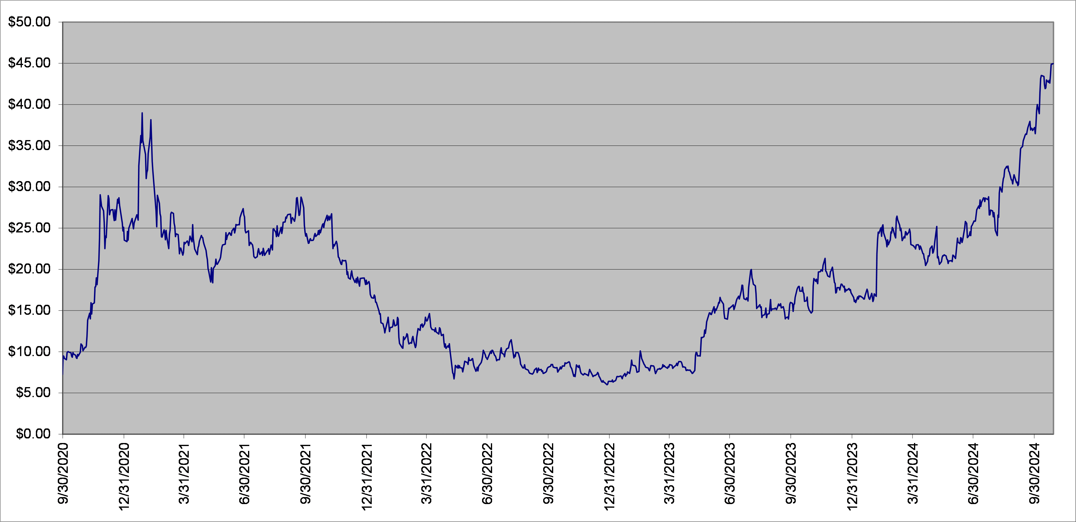 Class A Common Stock of Palantir Technologies Inc. – Daily Closing Prices |