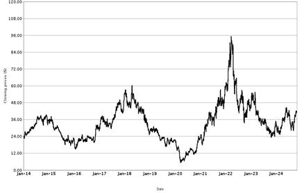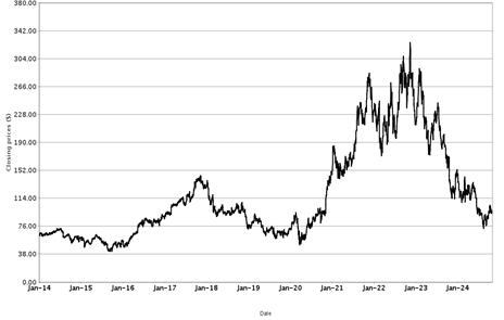 The following graphs set forth historical closing values of the Basket Underliers for the period from January 1, 2014 (or from the initial listing date, if later) to October 28, 2024. We obtained the information in the graphs from Bloomberg Financial Markets, without independent investigation. We cannot give you assurance that the performance of the Basket Underliers will result in the return of all of your initial investment.