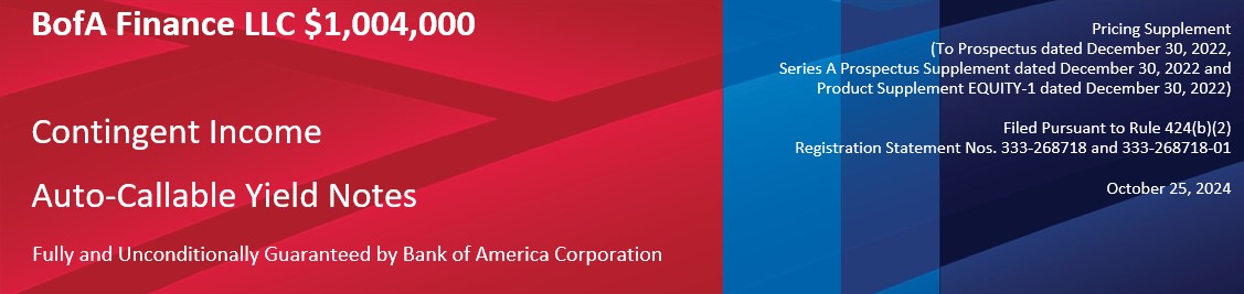 All payments on the Notes are subject to the credit risk of BofA Finance LLC (“BofA Finance” or the “Issuer”), as issuer of the Notes, and Bank of America Corporation (“BAC” or the “Guarantor”), as guarantor of the Notes. |