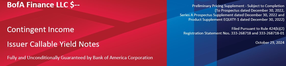 All payments on the Notes are subject to the credit risk of BofA Finance LLC (“BofA Finance” or the “Issuer”), as issuer of the Notes, and Bank of America Corporation (“BAC” or the “Guarantor”), as guarantor of the Notes.