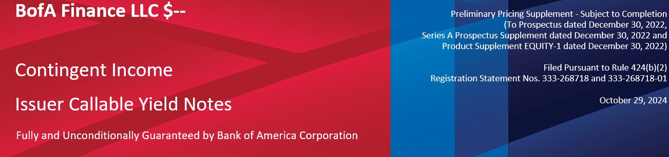 All payments on the Notes are subject to the credit risk of BofA Finance LLC (“BofA Finance” or the “Issuer”), as issuer of the Notes, and Bank of America Corporation (“BAC” or the “Guarantor”), as guarantor of the Notes.