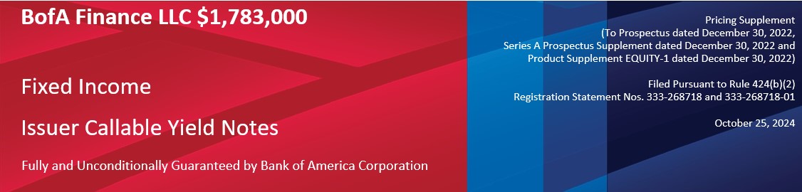 All payments on the Notes are subject to the credit risk of BofA Finance LLC (“BofA Finance” or the “Issuer”), as issuer of the Notes, and Bank of America Corporation (“BAC” or the “Guarantor”), as guarantor of the Notes.