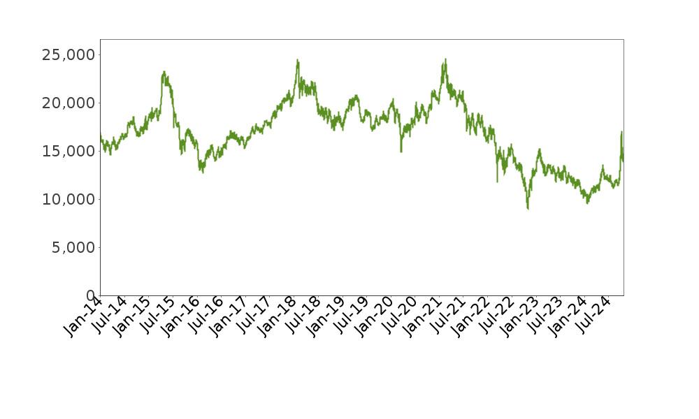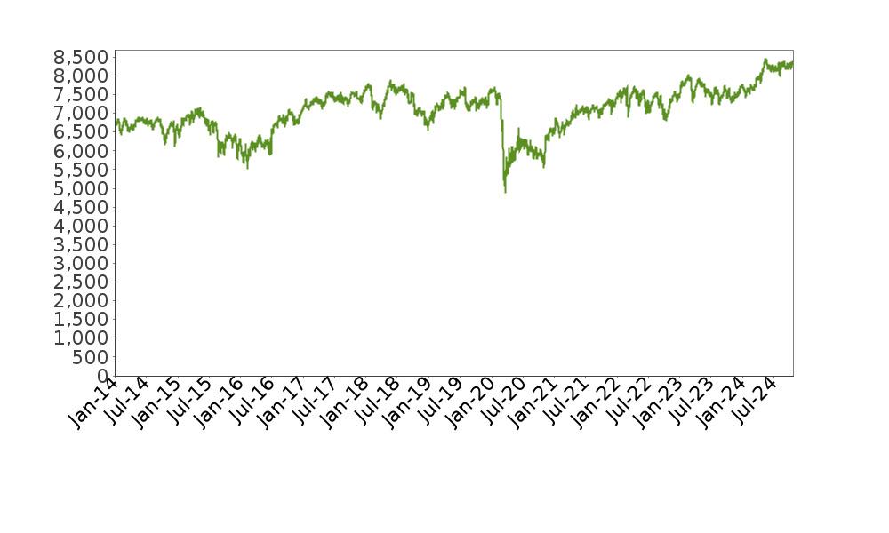 The following graph shows the daily historical performance of the XIN0I in the period from January 1, 2014 through October 21, 2024. We obtained this historical data from Bloomberg L.P. We have not independently verified the accuracy or completeness of the information obtained from Bloomberg L.P. On October 21, 2024, the closing level of the XIN0I was 14,190.33.
