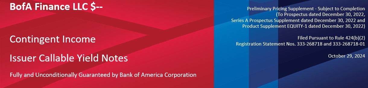 All payments on the Notes are subject to the credit risk of BofA Finance LLC (“BofA Finance” or the “Issuer”), as issuer of the Notes, and Bank of America Corporation (“BAC” or the “Guarantor”), as guarantor of the Notes. |